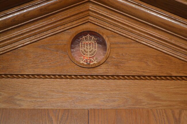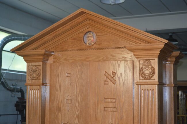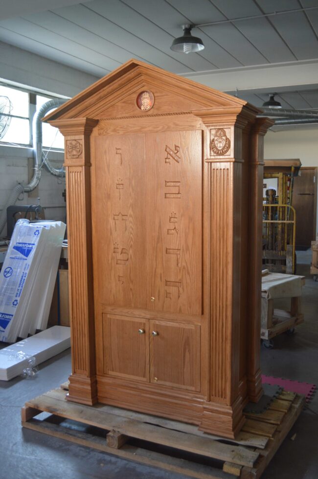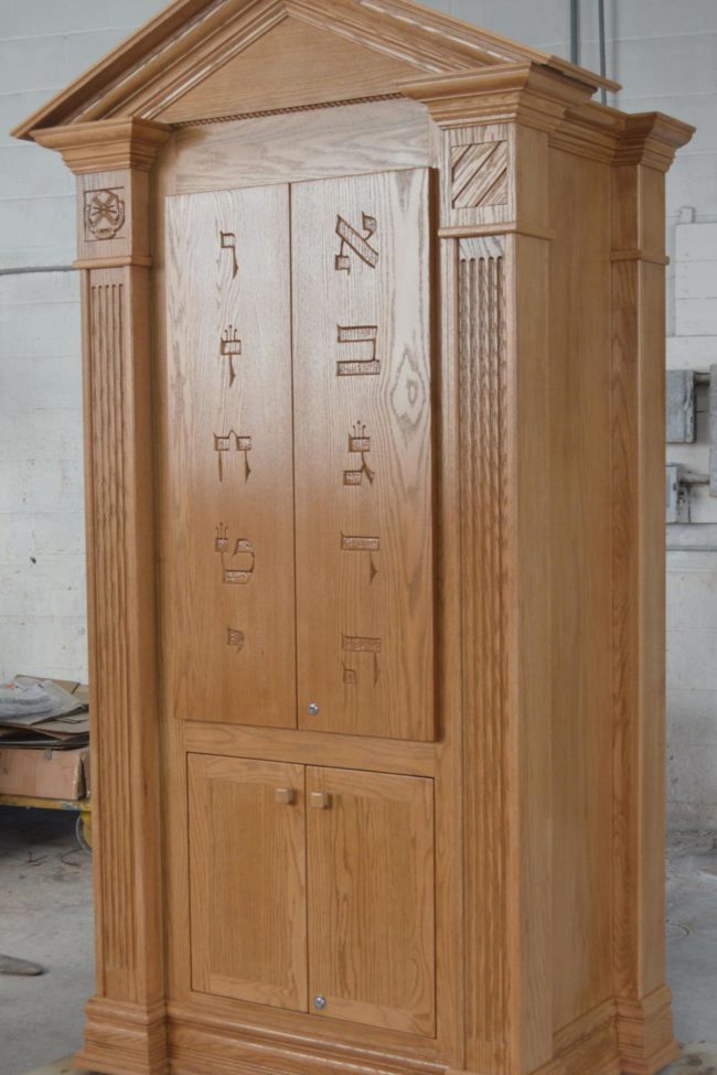 Available in oak (shown) or cherry stained birch. Can be ordered with built-in ner tamid as shown on the Ft. Hood model.